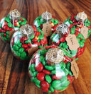 1. Frascos transparentes rellenos con dulces verdes y rojos. Se pueden personalizar para los distintos integrantes de la familia y si nos ponemos creativos, colgarlos del árbol de navidad como un verdadero adorno.
