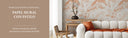 Observa el color de tus muebles o textiles. El papel mural no tiene que ser igual, pero sí armonizar. Si tienes un sofá terracota, podrías usar un papel con detalles verdes oliva o beige cálido.