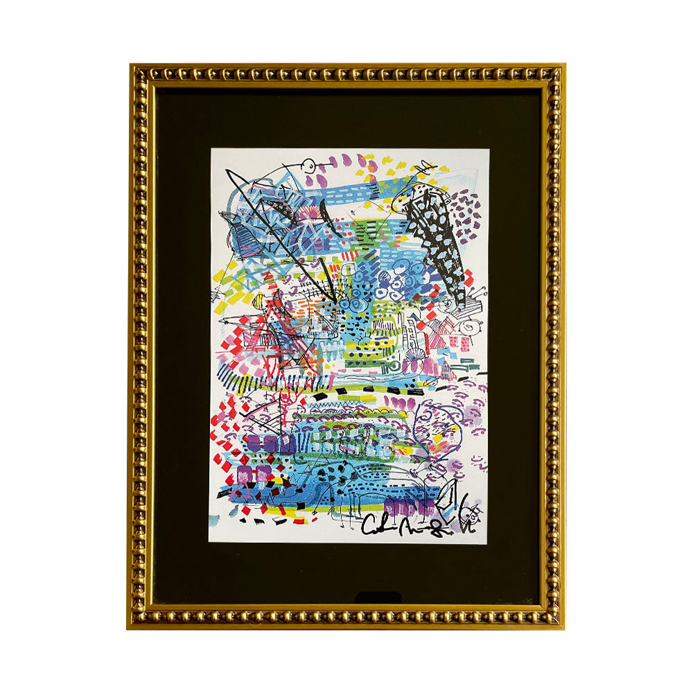 Cuadro de 43x33 cms. Reproducción técnica mixta de la artista Caterina Magnolfi. Enmarcado con fondo negro y Marco perlitas doradas.