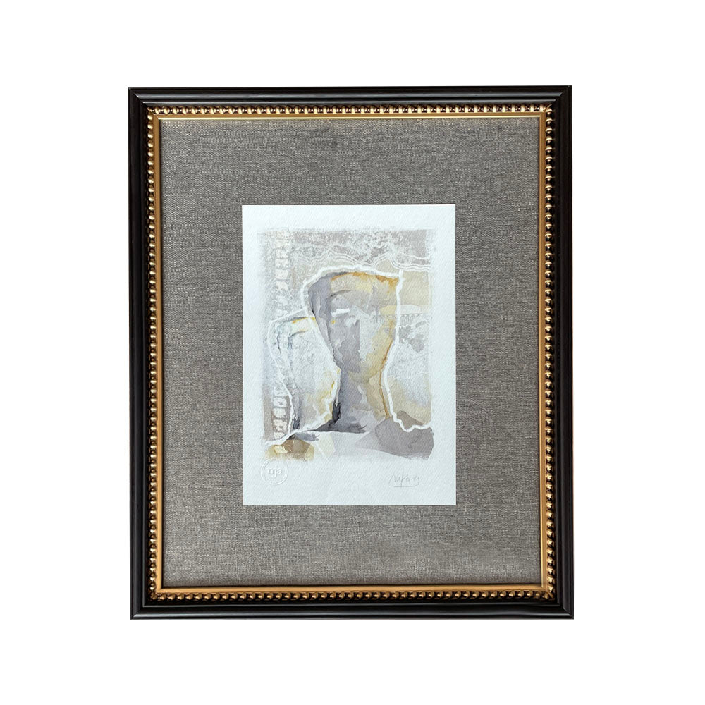 Cuadro de 51x60 cms. Reproducción de un grabado de la artista María Jesús Ariztía. Enmarcado sobre fondo de lino con doble marco negro y perla oro.