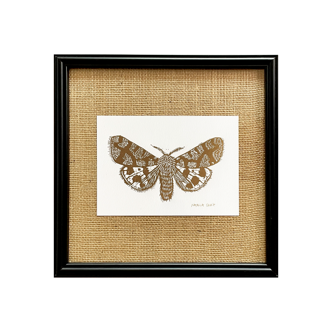 Natalia Ogaz Serie Black Arpillera Mariposa Nocturna Dorada