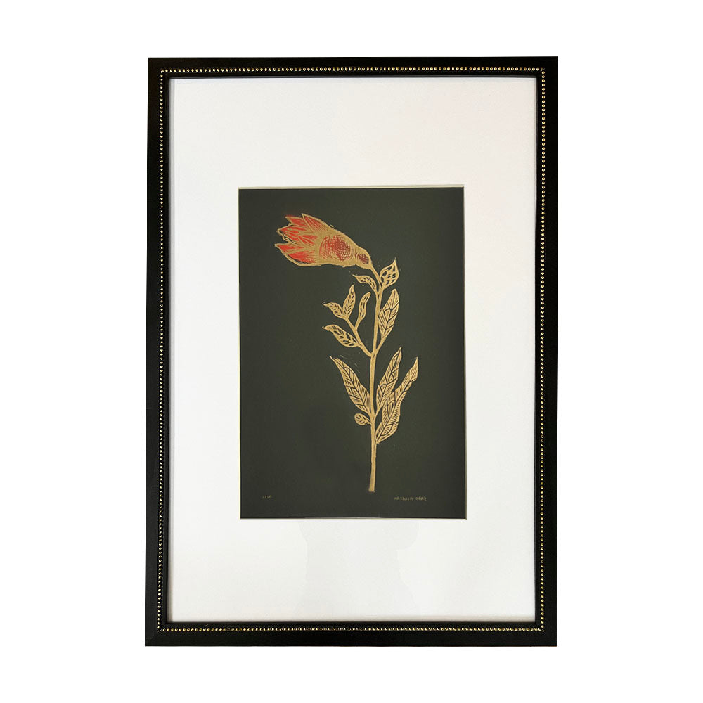 Linografía. Cuadro de 77x54cms. Enmarcado con paspartú blanco y marco negro con pelotitas.