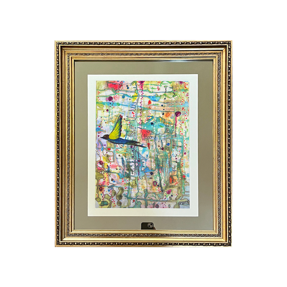 Lámina traída de Estados Unidos. Enmarcado con fondo de espejo y marco Martina dorado de 6 cms. Dimensiones: 65x52,5 cms.