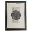 Serigrafía sobre tela con fondo negro en marco negro de 2cm de ancho y 2cm de profundidad. Dimensiones: 50x70cm.