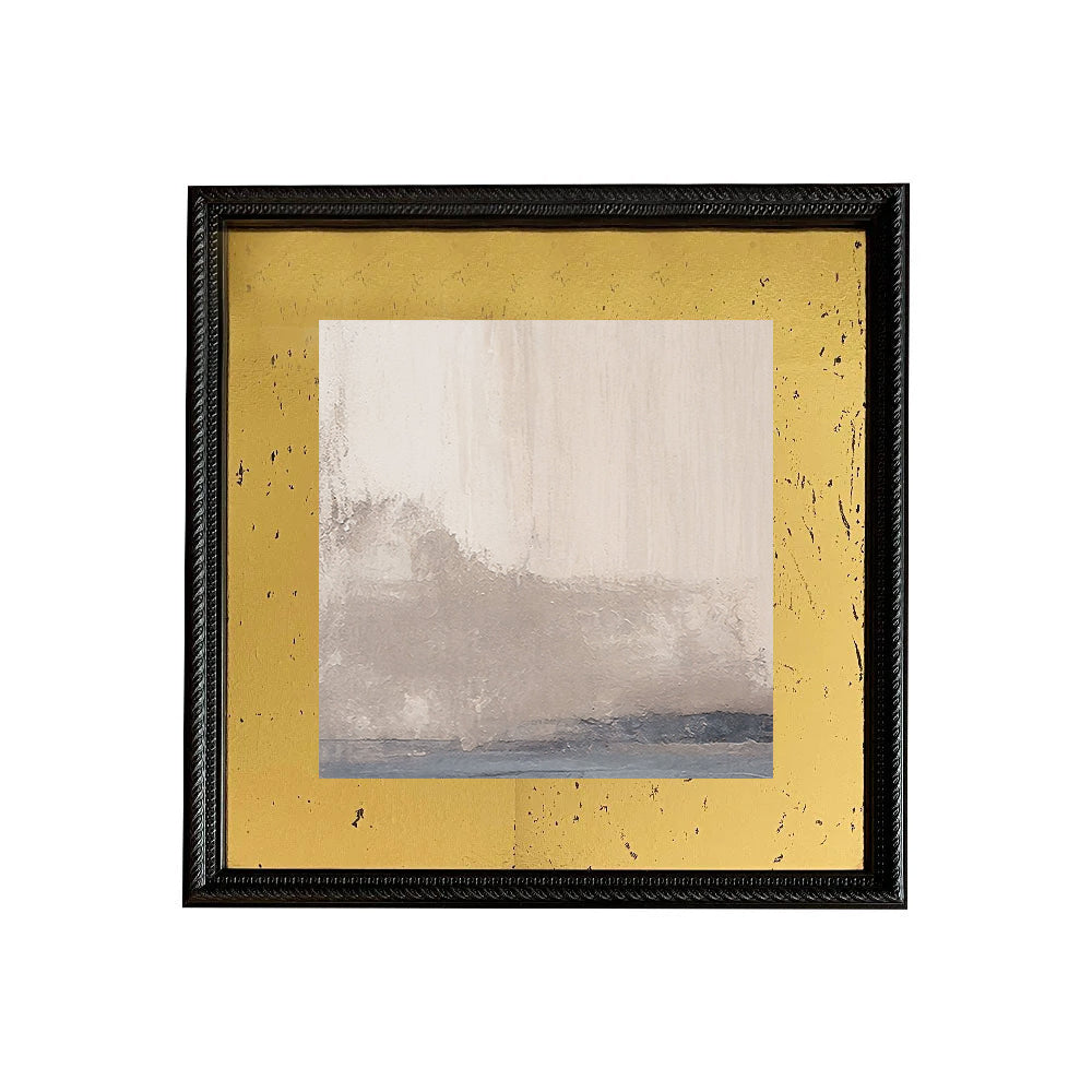 Cuadro de 33x33 cms. Enmarcado con fondo oro raspado con negro (trabajo a mano) y marco greca negro de 2 cms. de frente. Con Vidrio.