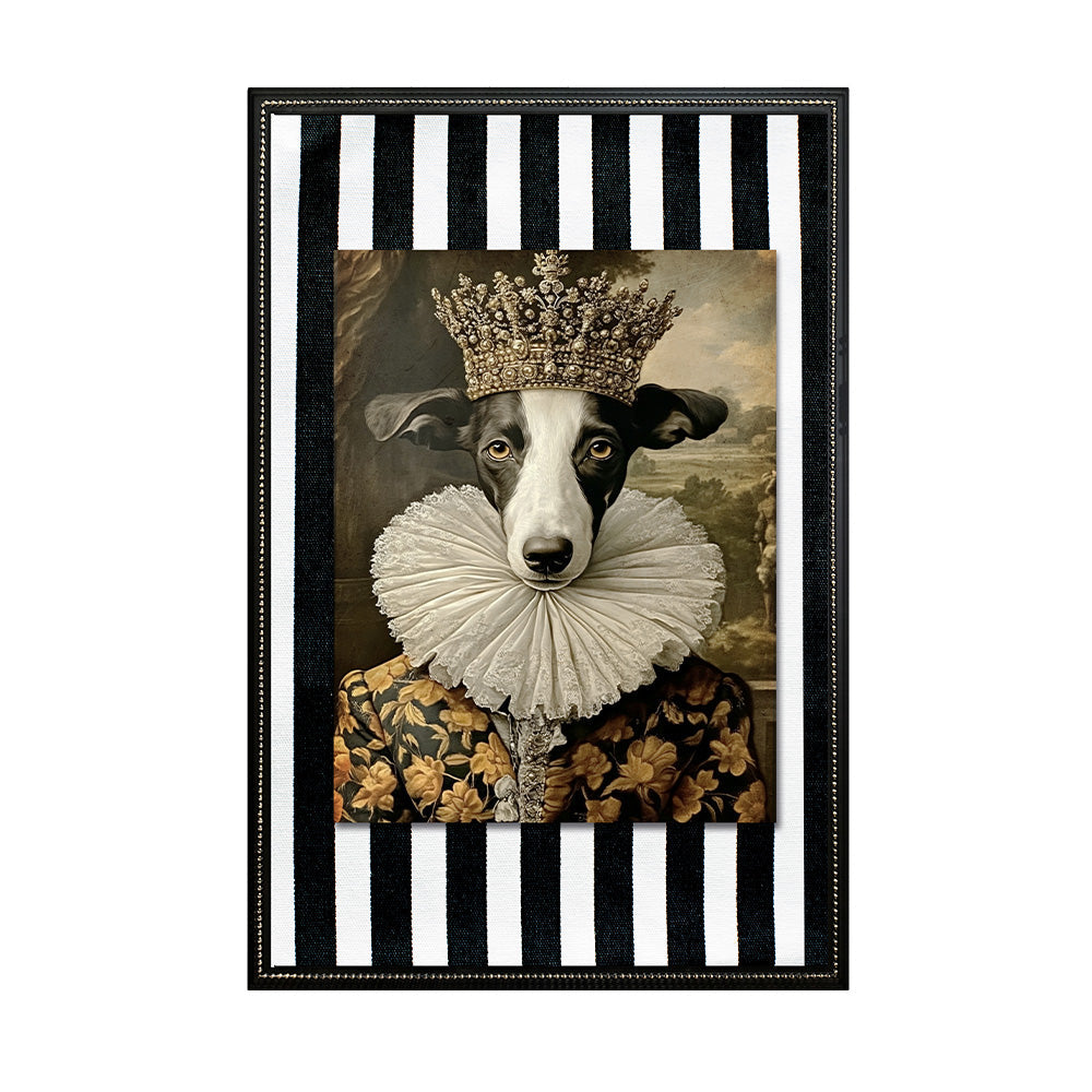 Cuadro de 86x129 cms. Canvas tensado en bastidor directo. Enmarcado en marco negro con perlita oro de 1.5 cms de frente.