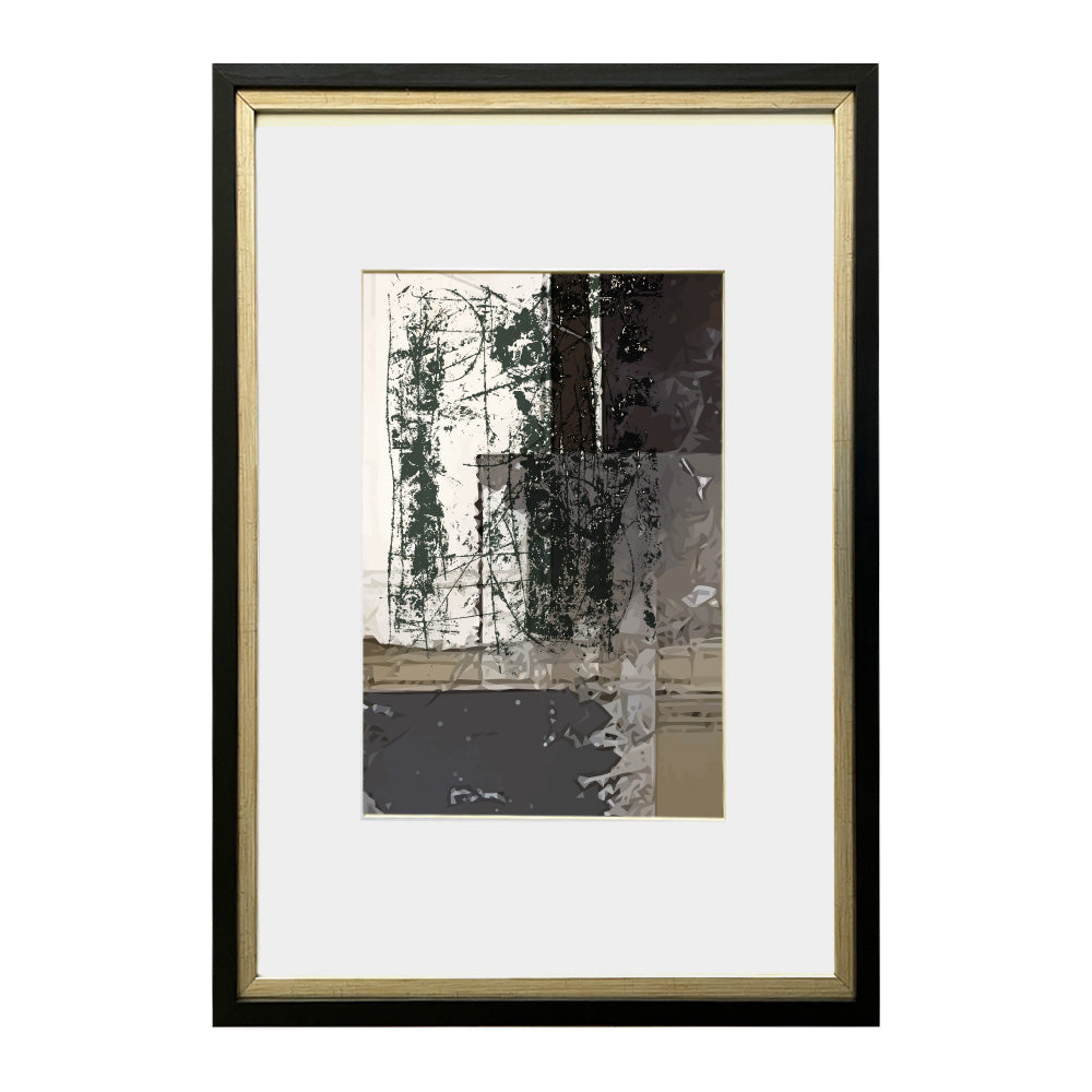 Ilustración digital enmarcada doble marco negro de 2 cms y folia champaña de 2 cms con paspartú blanco. 77x54 cms.