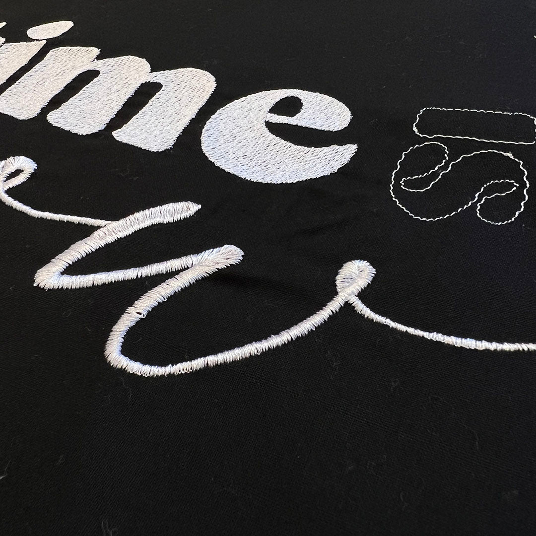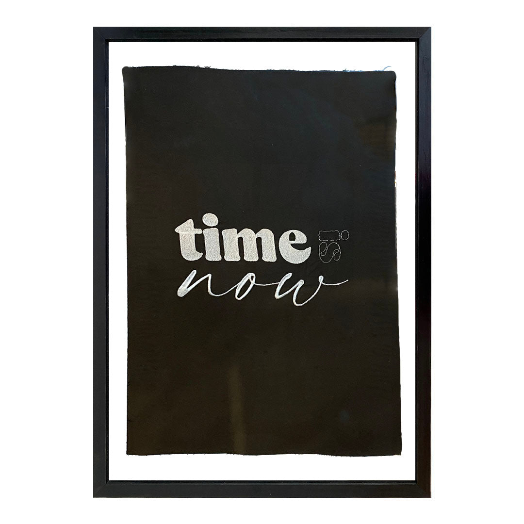 Bordado Frases Fondo Negro Time Is Now