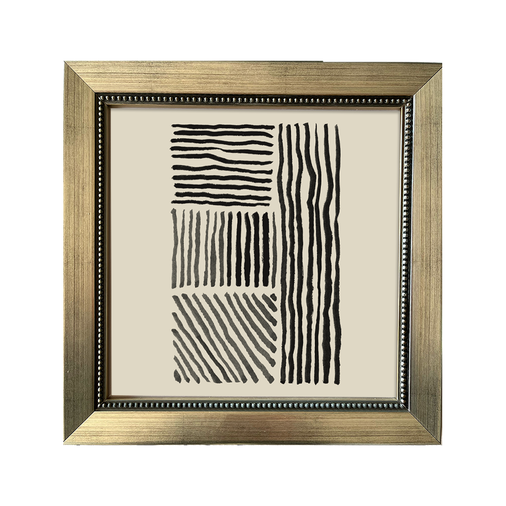 Ilustración digital, enmarcada directo en Marco Champaña liso con pelotitas de 3 cm de frente.
