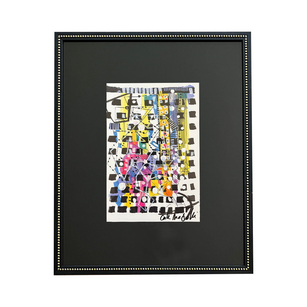 Cuadro de 43x54 cms. Reproducción técnica mixta de la artista Caterina Magnolfi. Enmarcado con paspartú negro y marco negro con perlitas.