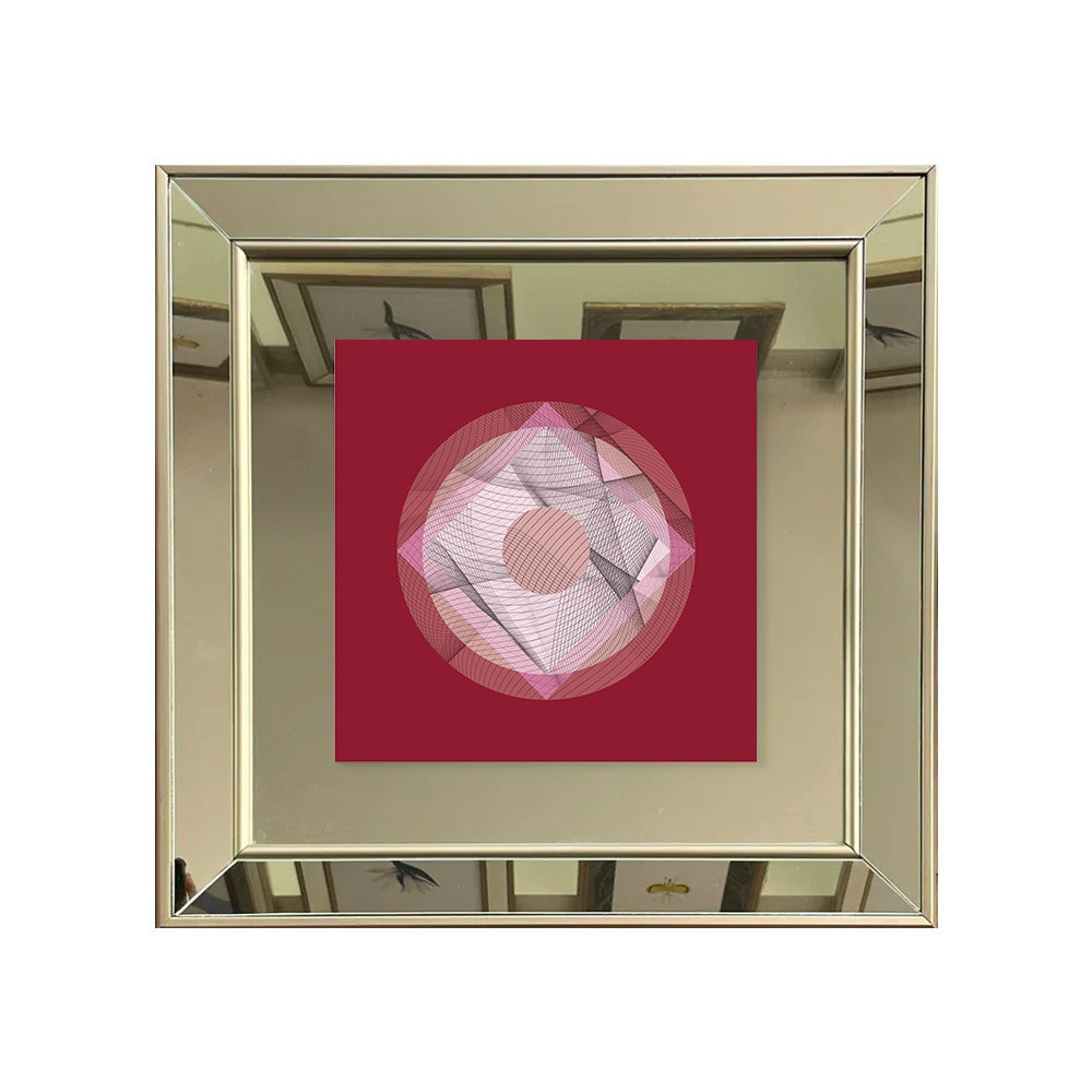 Cuadro de 55x55 cms. Ilustraciones fondo espejo. Enmarcado en marco espejo borde chamapaña de 3 cms de frente.