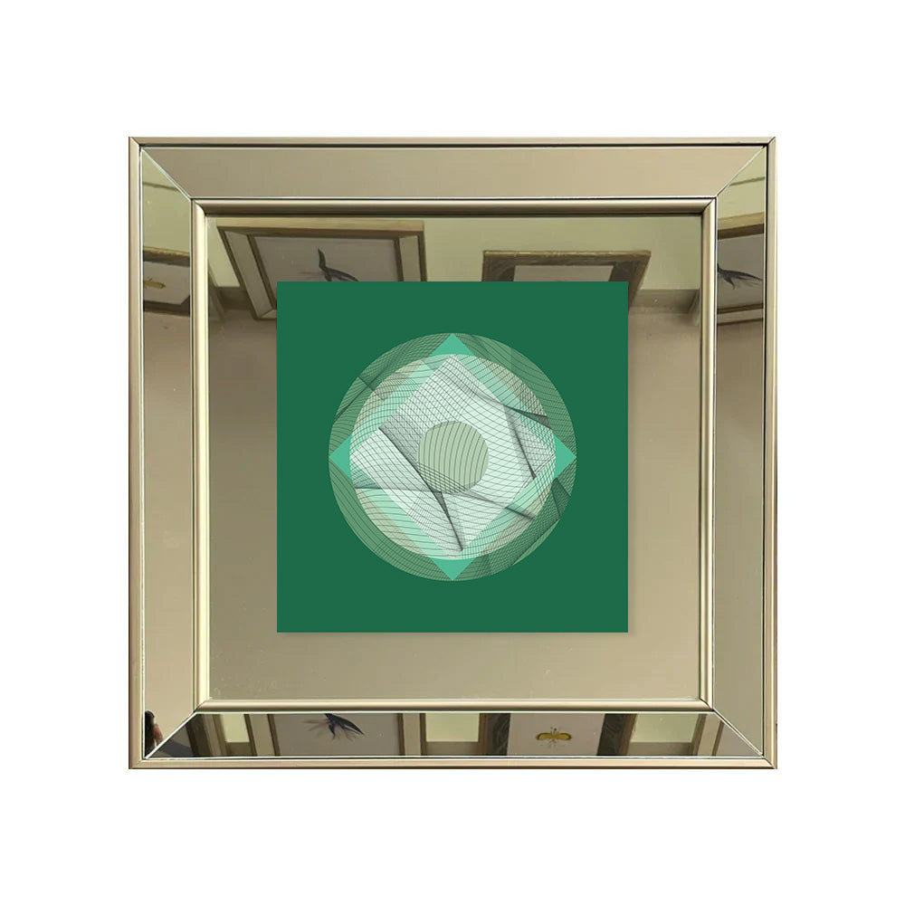 Cuadro de 55x55 cms. Ilustraciones fondo espejo. Enmarcado en marco espejo borde chamapaña de 3 cms de frente.