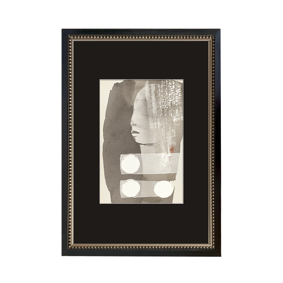 Cuadro de 77x54 cms. Ilustración digital realizada por Rosario Greene. Enmarcado con paspartú blanco en doble marco. Marco negro liso por fuera y marco champaña liso por dentro. Ambas molduras de madera de 2 cms de frente.