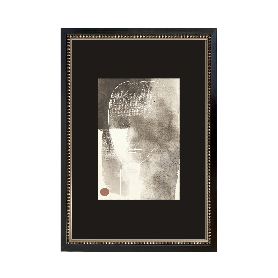 Cuadro de 77x54 cms. Ilustración digital realizada por Rosario Greene. Enmarcado con paspartú blanco en doble marco. Marco negro liso por fuera y marco champaña liso por dentro. Ambas molduras de madera de 2 cms de frente.