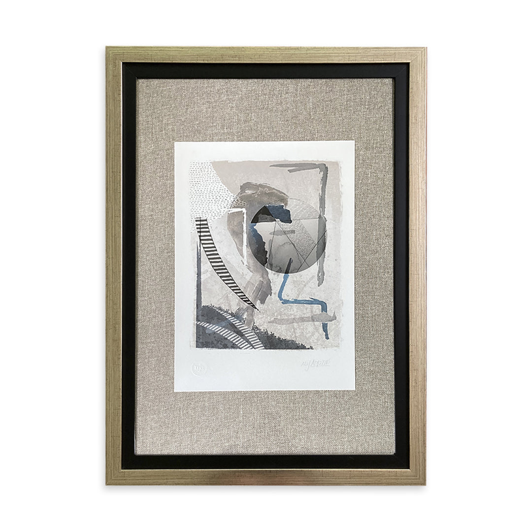 Grabado figuras abstractas azul y gris 2