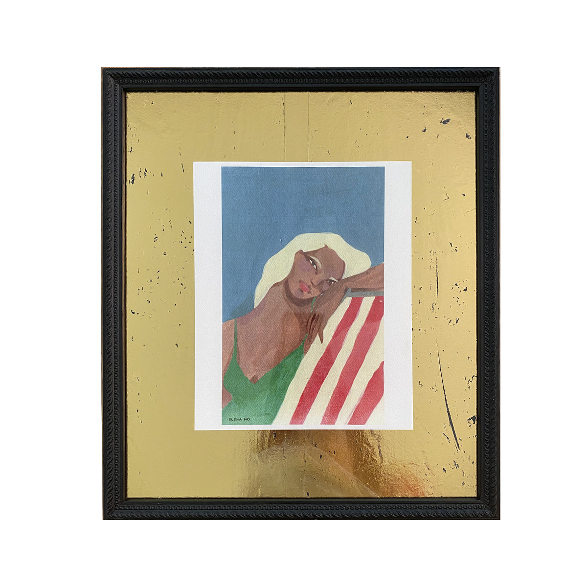 Ilustración de Elena Hohlberg. Enmarcado con fondo oro raspado y marco Gr15 negro de 2 cms de frente.