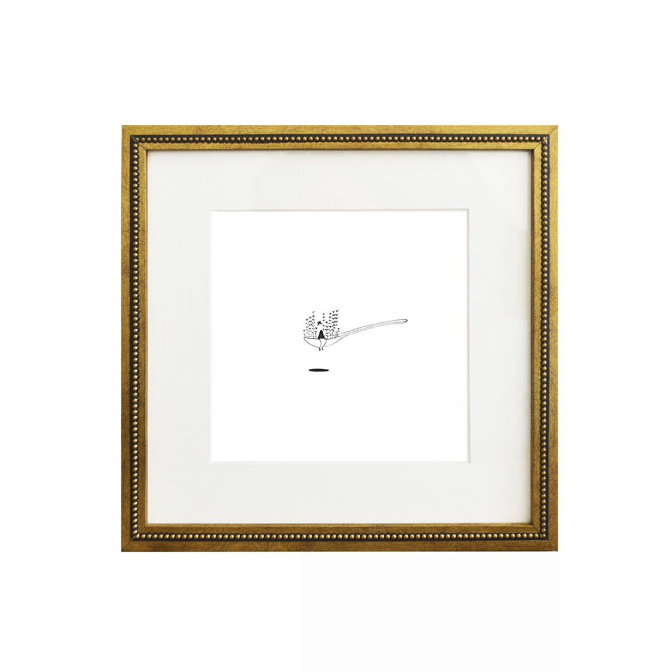 Ilustración por El Tomai Enmarcada con paspartú blanco en marco perlita delicada oro 33x33 cms.