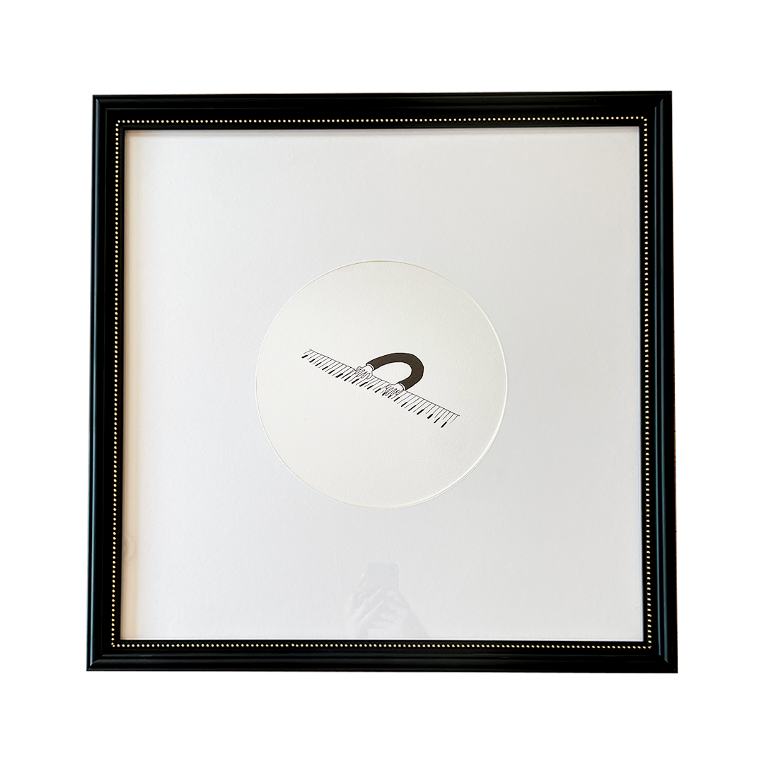 Cuadro de 66x66 cms. Reproducción técnica a lápiz del artista Tomás Id (eltomai). Enmarcado con paspartú circular blanco y doble marco.
