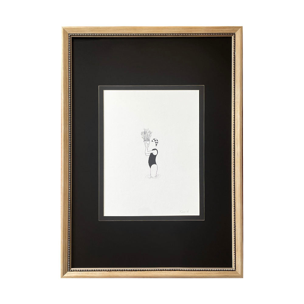 Cuadro de 77x54 cms. Reproducción técnica a lápiz del artista Tomás Id (eltomai). Enmarcado con paspartú negro con bisel y marco folia champaña con perlitas