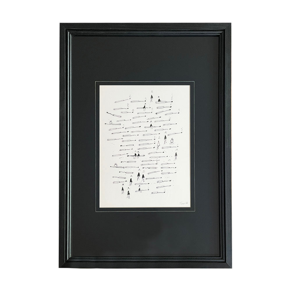 Cuadro de 77x54 cms. Reproducción técnica a lápiz del artista Tomás Id (eltomai). Enmarcado con paspartú negro con bisel y marco de madera negro con perlitas.