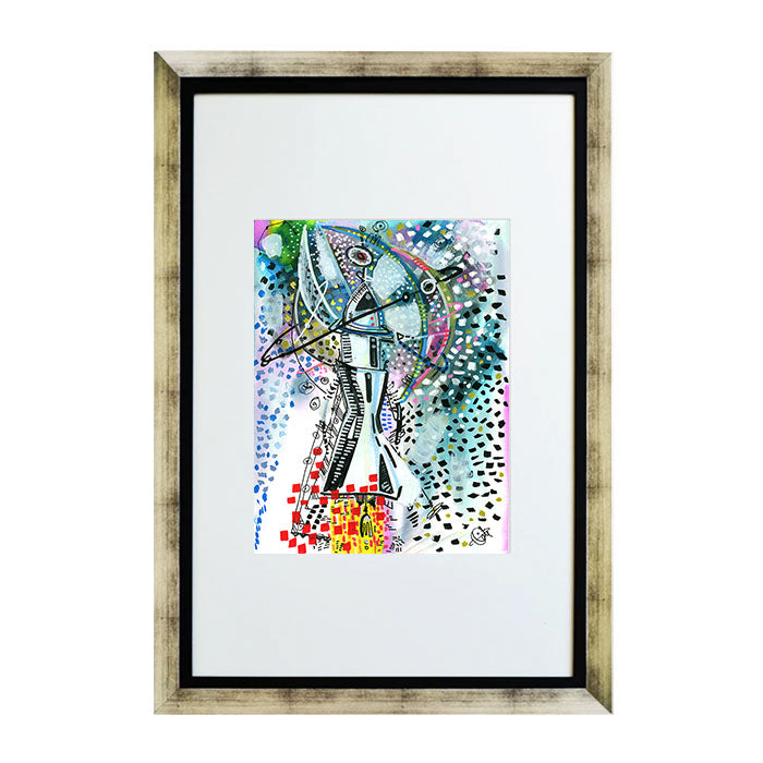Ilustración de Caterina Magnolfi enmarcado en doble marco A Negro y C Plata con paspartú blanco. Dimensiones: 54x77cms.