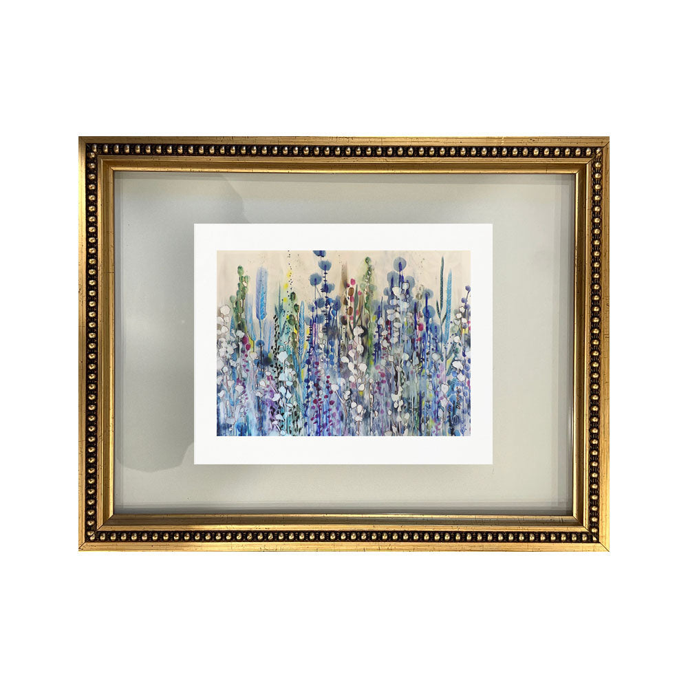 Ilustración de Sylvie Demers. Enmarcado entrevidrios y marco perla de 3 cms de frente y 2 cms de profundidad. Dimensiones: 35,3 x 45,3 cms.
