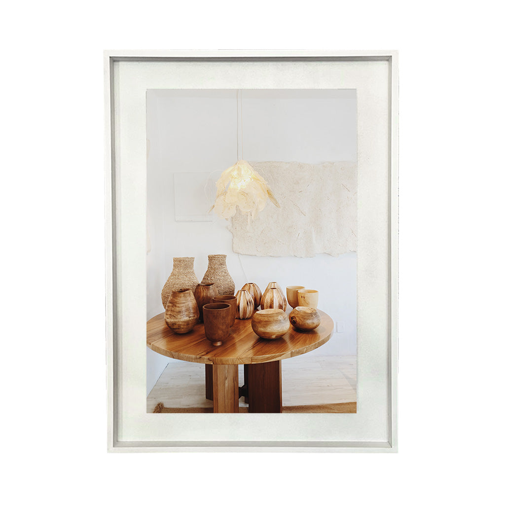 Fotografías de 64x88 impresas sobre base gruesa de 1 cms. Levantadas para que se vean con efecto volado y enmarcadas en marco caja de madera pintado a mano. Sin Vidrio. Ideal para lugares con mucho ventanal para que no se refleje la luz.