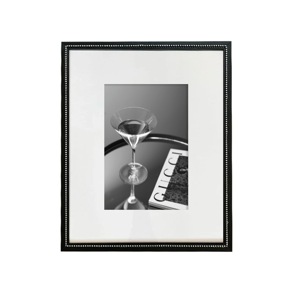 Cuadro de 40x50 cms. Fotografias con paspartú blanco. Enmarcado en marco negro perlita plata de 4 cms de frente.