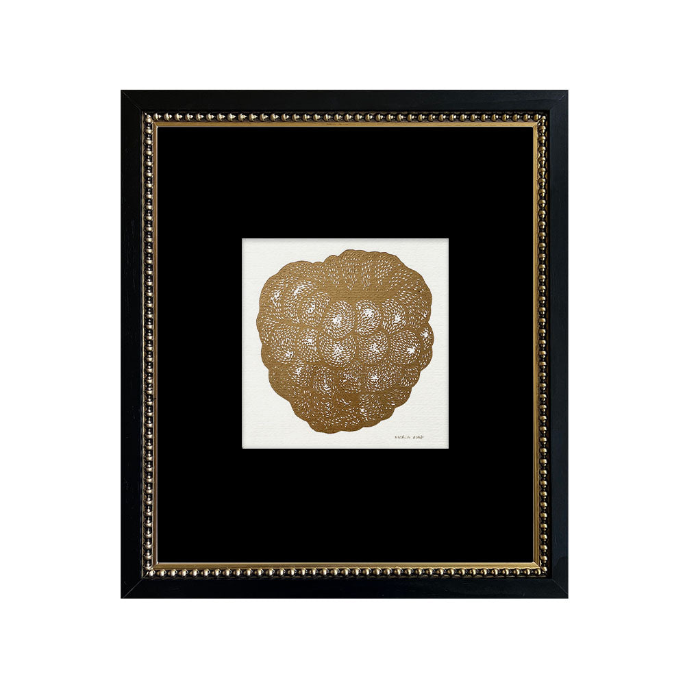 Linografía original por Natalia Ogaz. Enmarcada con paspartú negro y Doble Marco en negro más perlita dorado de 3,5 cms de frente. 45x51cm.