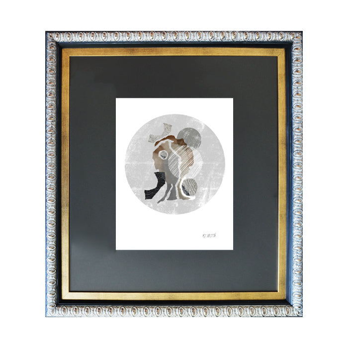 Grabado por María Jesús Ariztía. Enmarcada en paspartú negro y doble marco Labrado Plata y A Oro de 5,5 cms. Dimensiones: 51x56 cms.