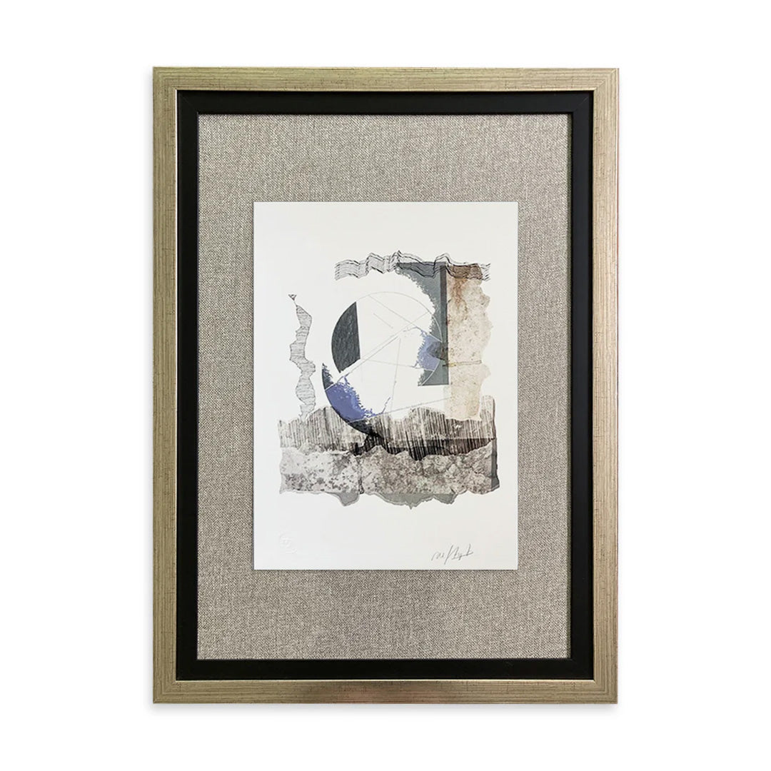 Grabado por María Jesús Ariztía. Enmarcado con fondo de genero rústico gris y doble marco C Plata y C Negro de 6 cms. Dimensiones: 63x88 cms.