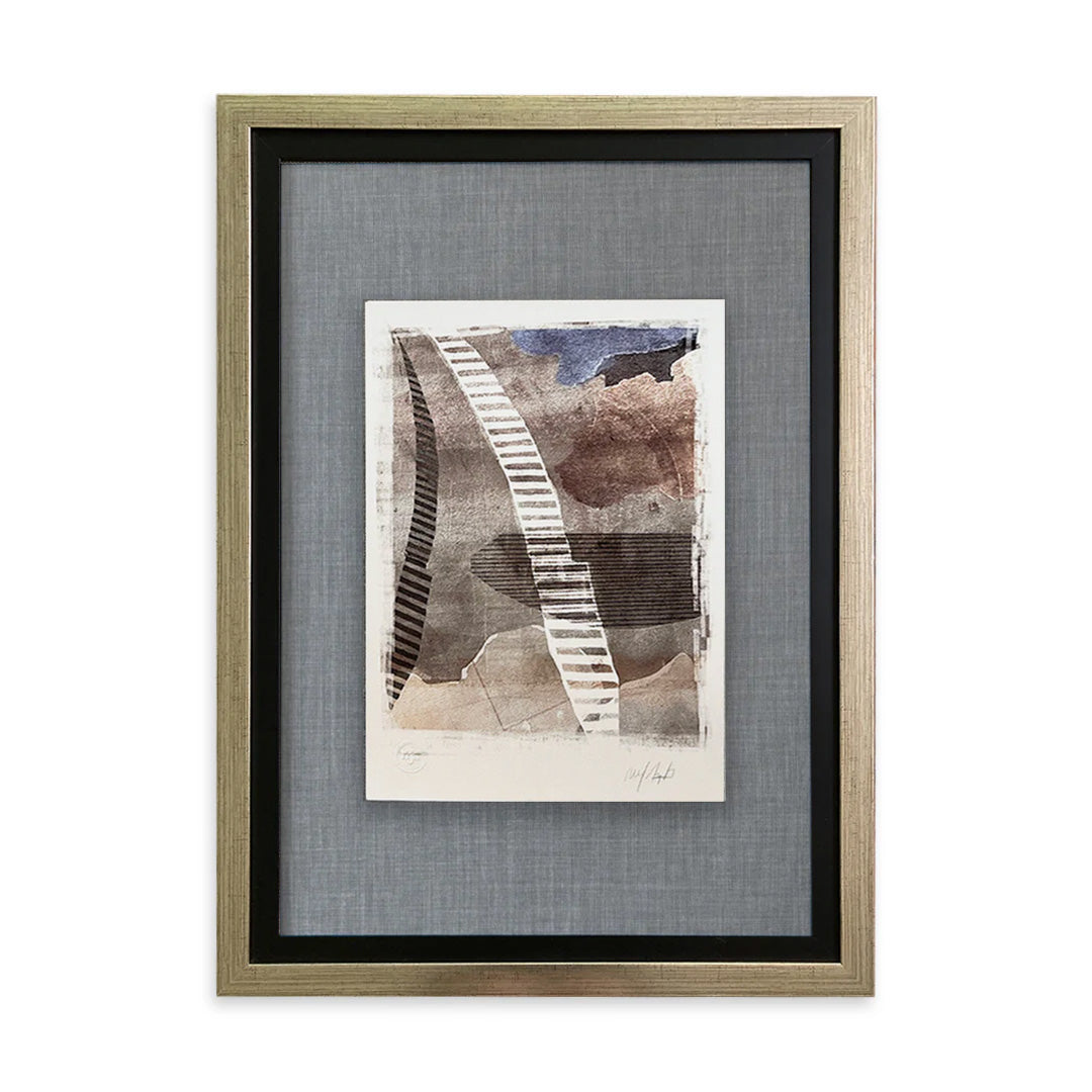 Grabado por María Jesús Ariztía. Enmarcado con fondo de genero rústico gris y doble marco C Plata y C Negro de 6 cms. Dimensiones: 63x88 cms.