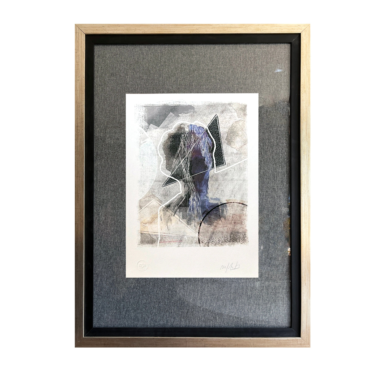 Grabado Silueta Cabeza Blanca Con Triángulo Gris