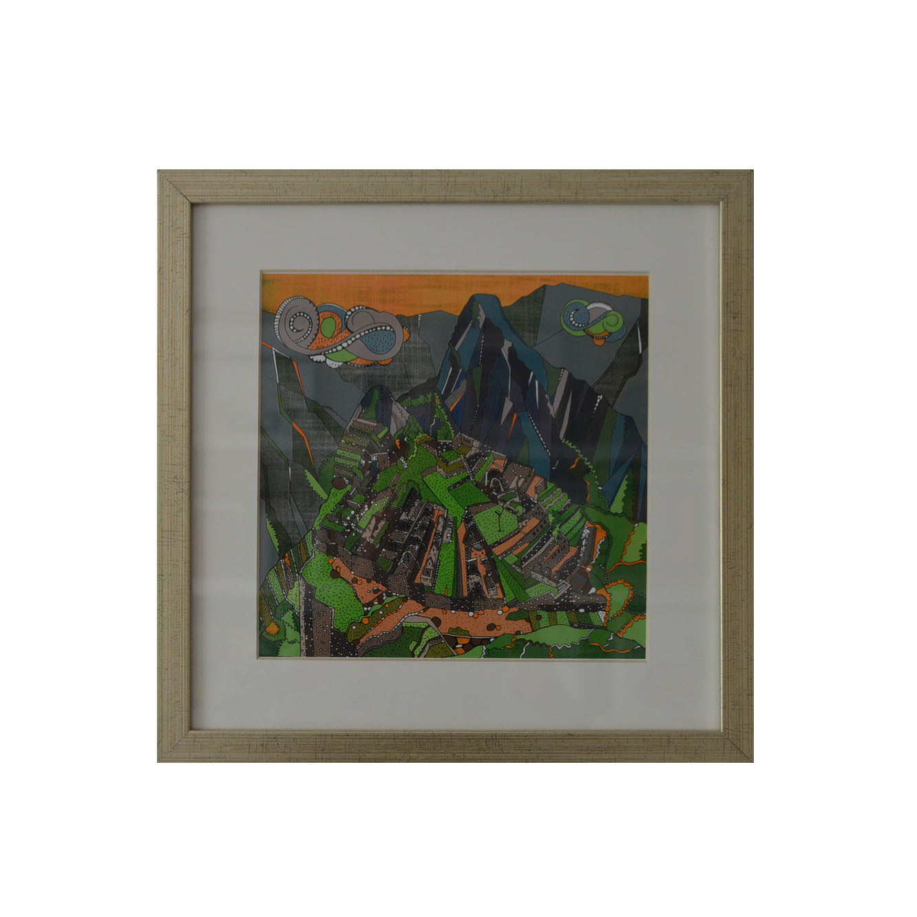Ilustración de Ignacia Martinez. Enmarcado con paspartú blanco y marco A plata de 2 cms. Dimensiones: 32,5x32,5cms.