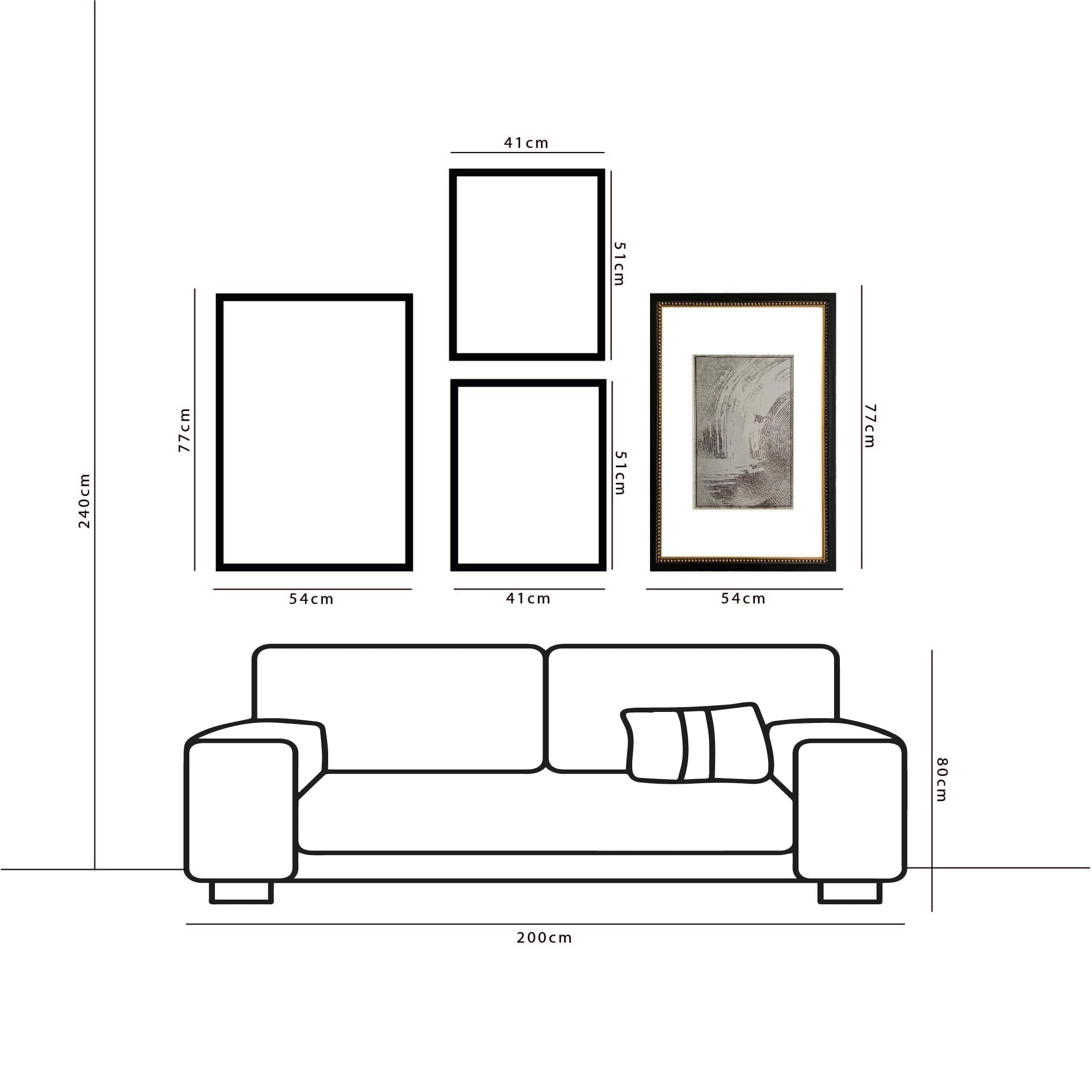 Cuadro de 77x54 cms. Lámina impresa con paspartú blanco. Enmarcada con Doble Marco en negro liso más perla oro de 3 cms de frente.