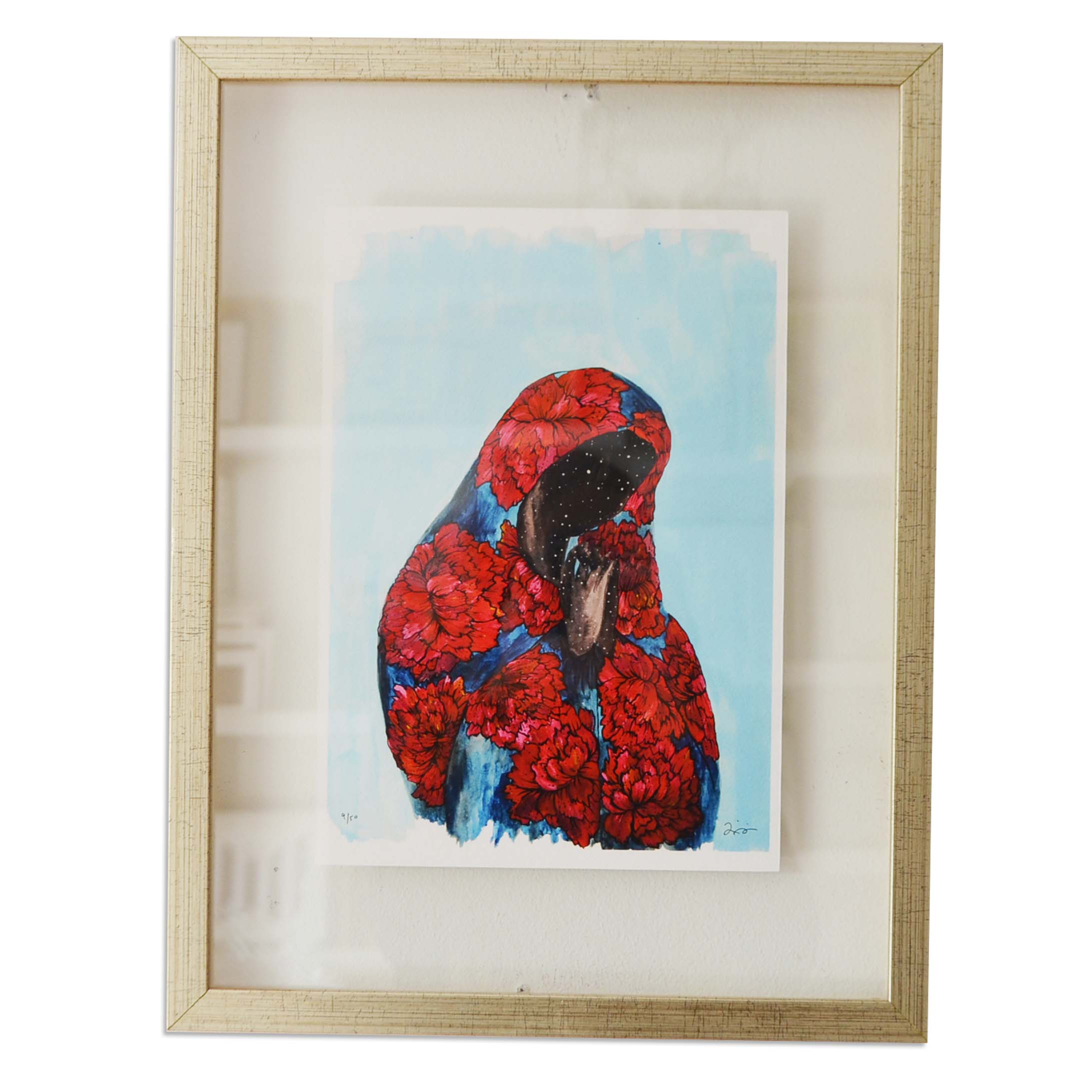 Ilustración de Trinidad Guzmán. Enmarcado con paspartú entrevidrios y marco plata 2 cms. Dimensiones: 41x33 cms.