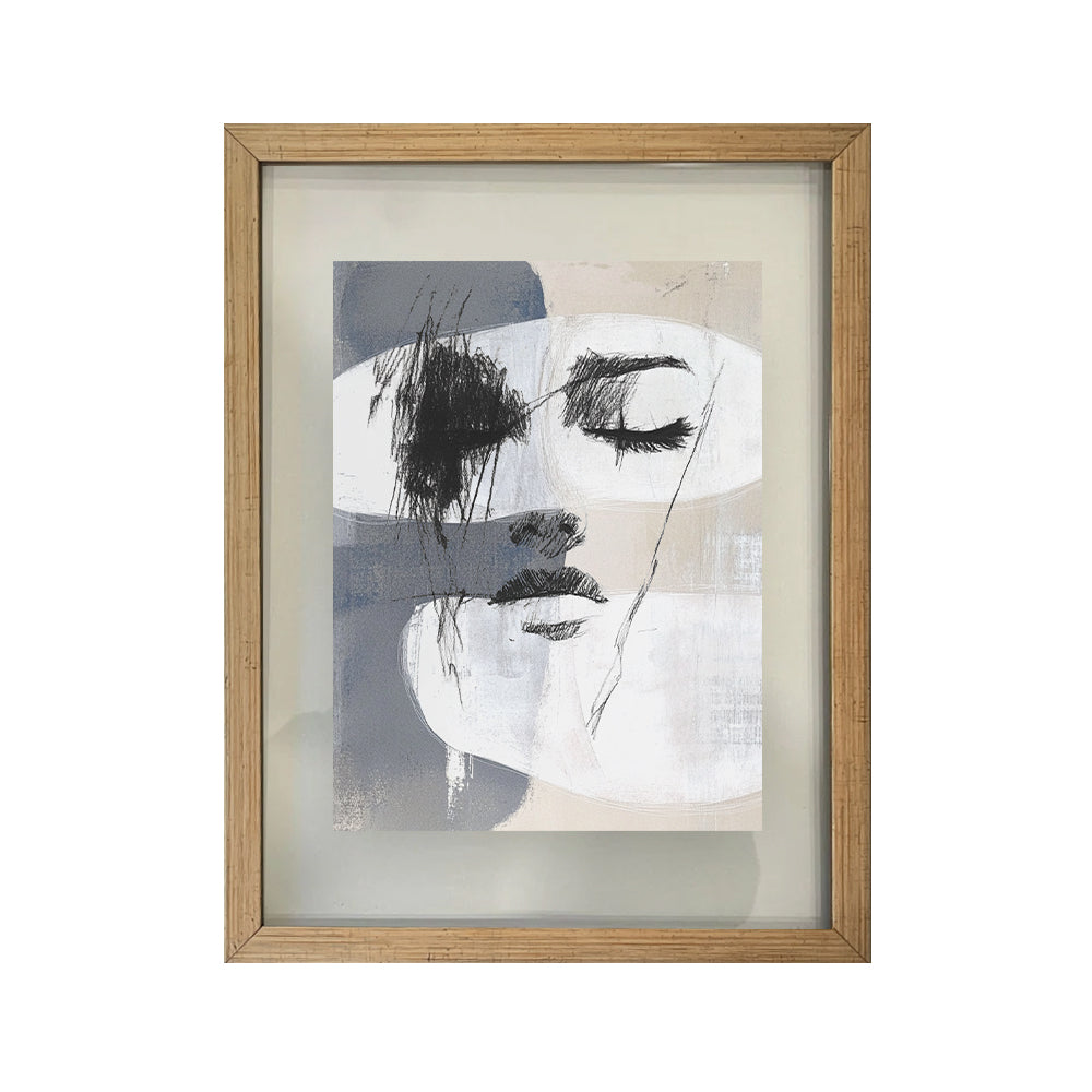 Cuadro de 43x33 cms. Ilustracion con vidrio. Enmarcado en marco plata de 2 cms de frente.