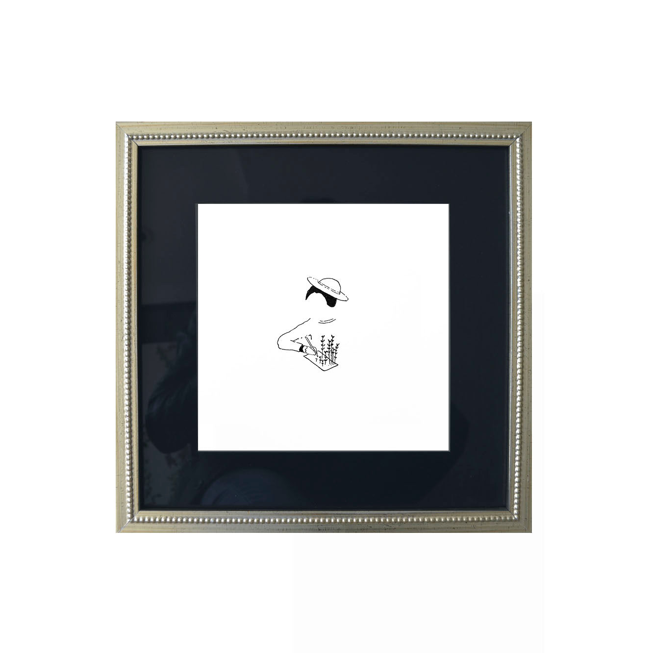 Ilustración por El Tomai Enmarcada con paspartú negro en marco perlita delicada plata 33x33 cms.