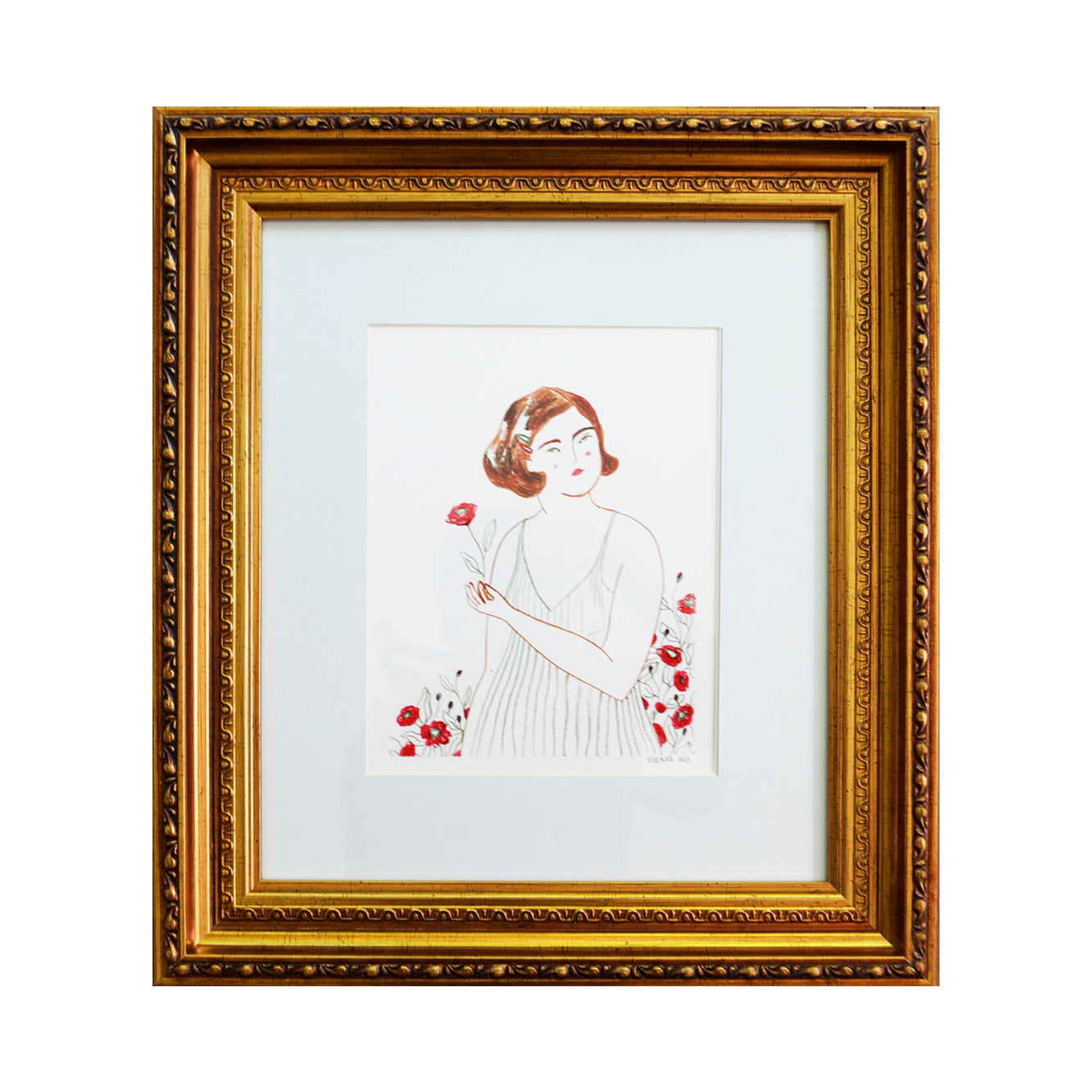 Mujer flores rojas