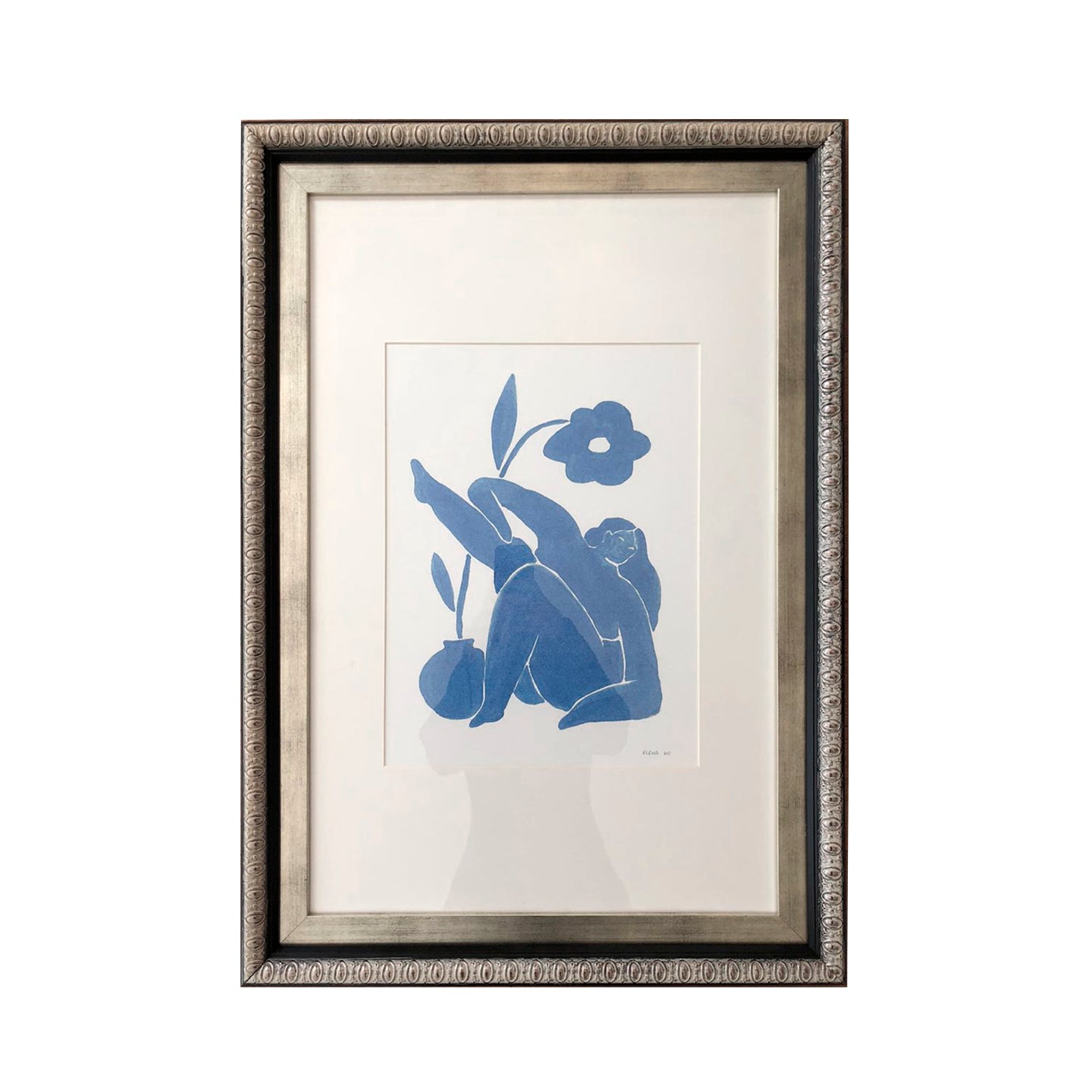 Mujer y flor en azul