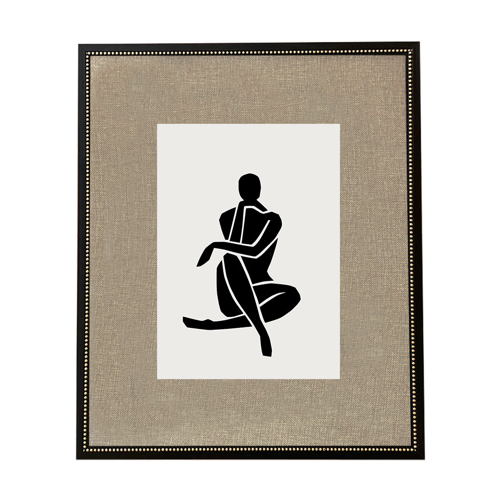 Cuadro de 43x53. Enmarcado con fondo de género beige y marco de madera negro con perlitas doradas de 2 cms. de frente. Con Vidrio.