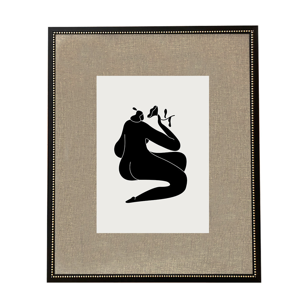 Cuadro de 43x53. Enmarcado con fondo de género beige y marco de madera negro con perlitas doradas de 2 cms. de frente. Con Vidrio.