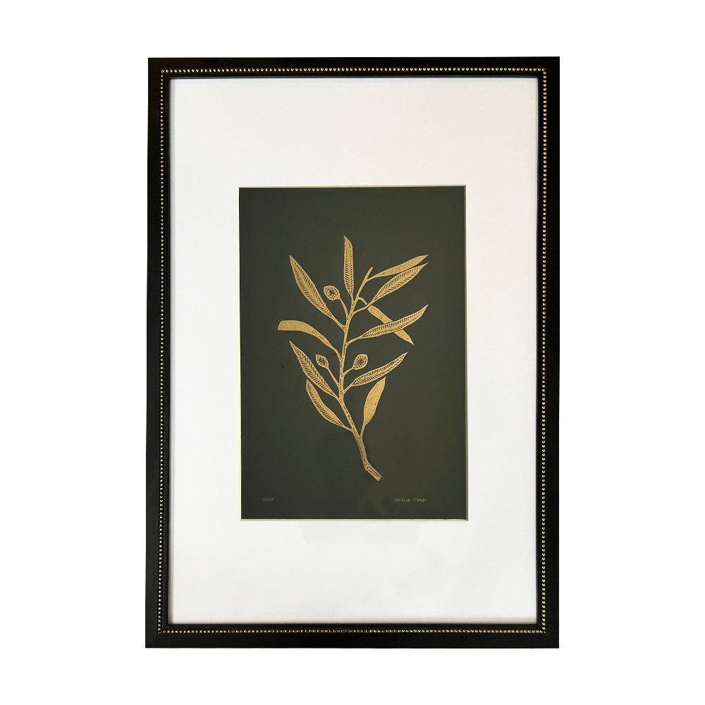 Linografía. Cuadro de 77x54cms. Enmarcado con paspartú blanco y marco negro con pelotitas.