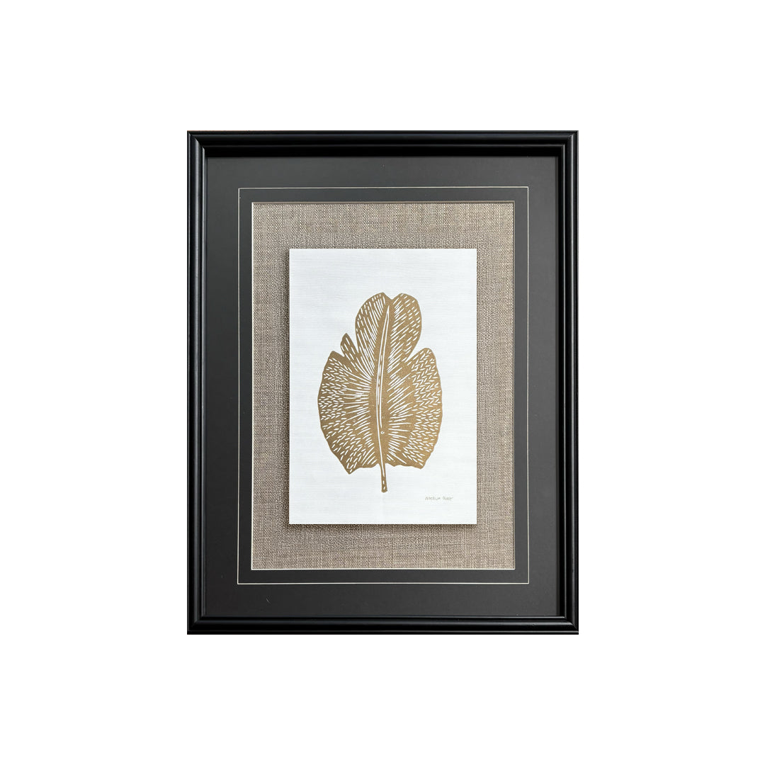 Linografía. Cuadro de 43x53cms. Enmarcado con paspartú negro con bisel blanco y fondo genero café en marco negro de madera de 2cms de frente.