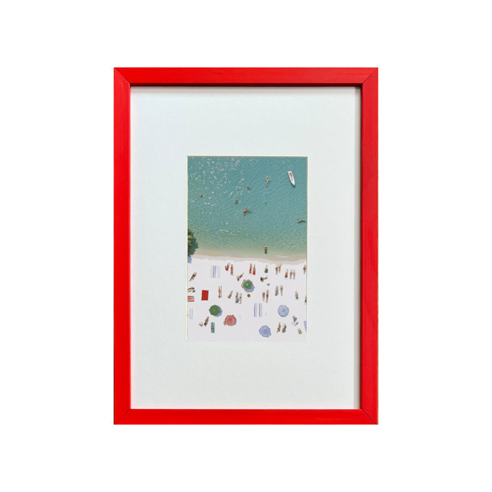 Cuadro de 33x44 cms. Ilustración con paspartú blanco. Enmarcado en marco rojo de 2 cms de frente.