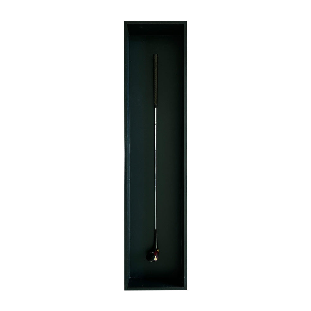 Cuadro de 30x125 cms Y 10 cms de Profundidad del cajón. Palo de Golf antiguo enmarcado con caja de madera negra pintada a mano. Sin Vidrio.