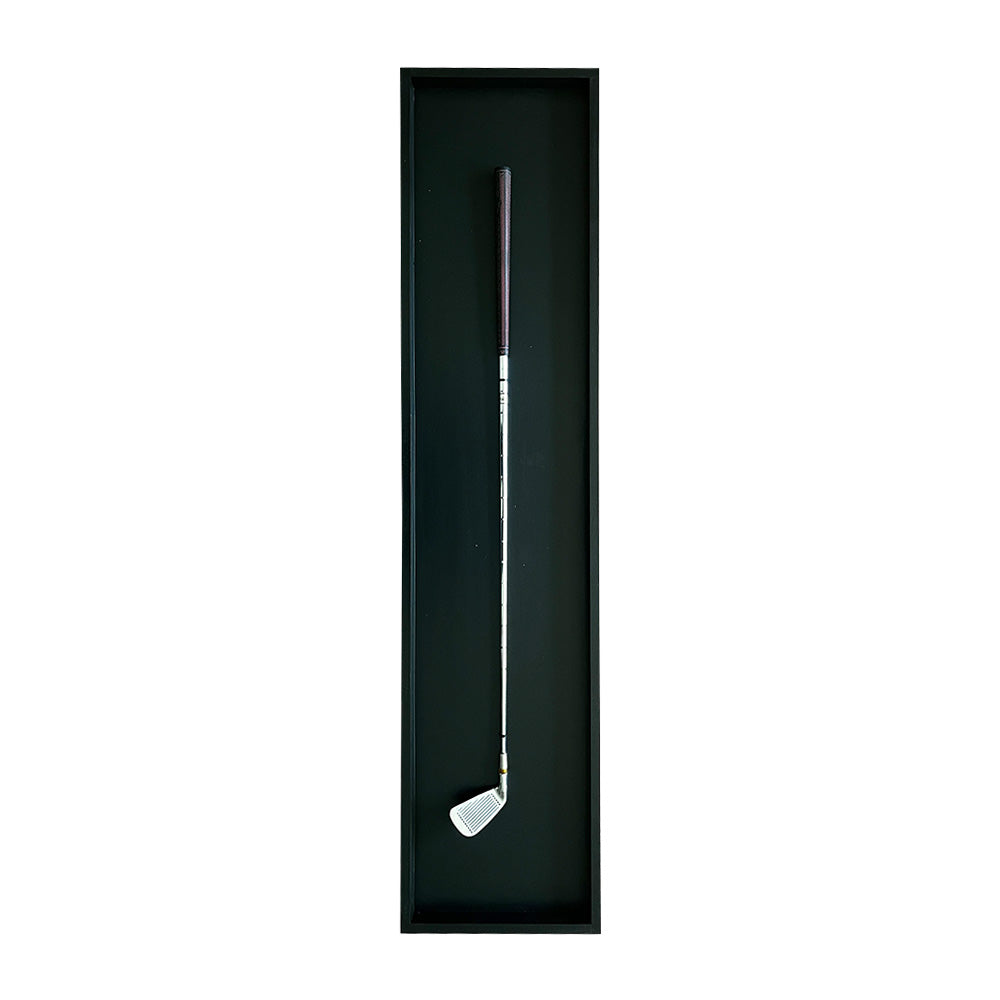 Cuadro de 30x125 cms y 3,5 cms de profundidad. Palo de Golf antiguo enmarcado con caja de madera negra pintada a mano. Sin Vidrio.
