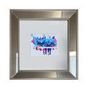 Ilustración de Andrea Rodriguez. Enmarcado con paspartú blanco y marco espejo de 3,5 cms, borde oro-plata Dimensiones: 75x75 cms.