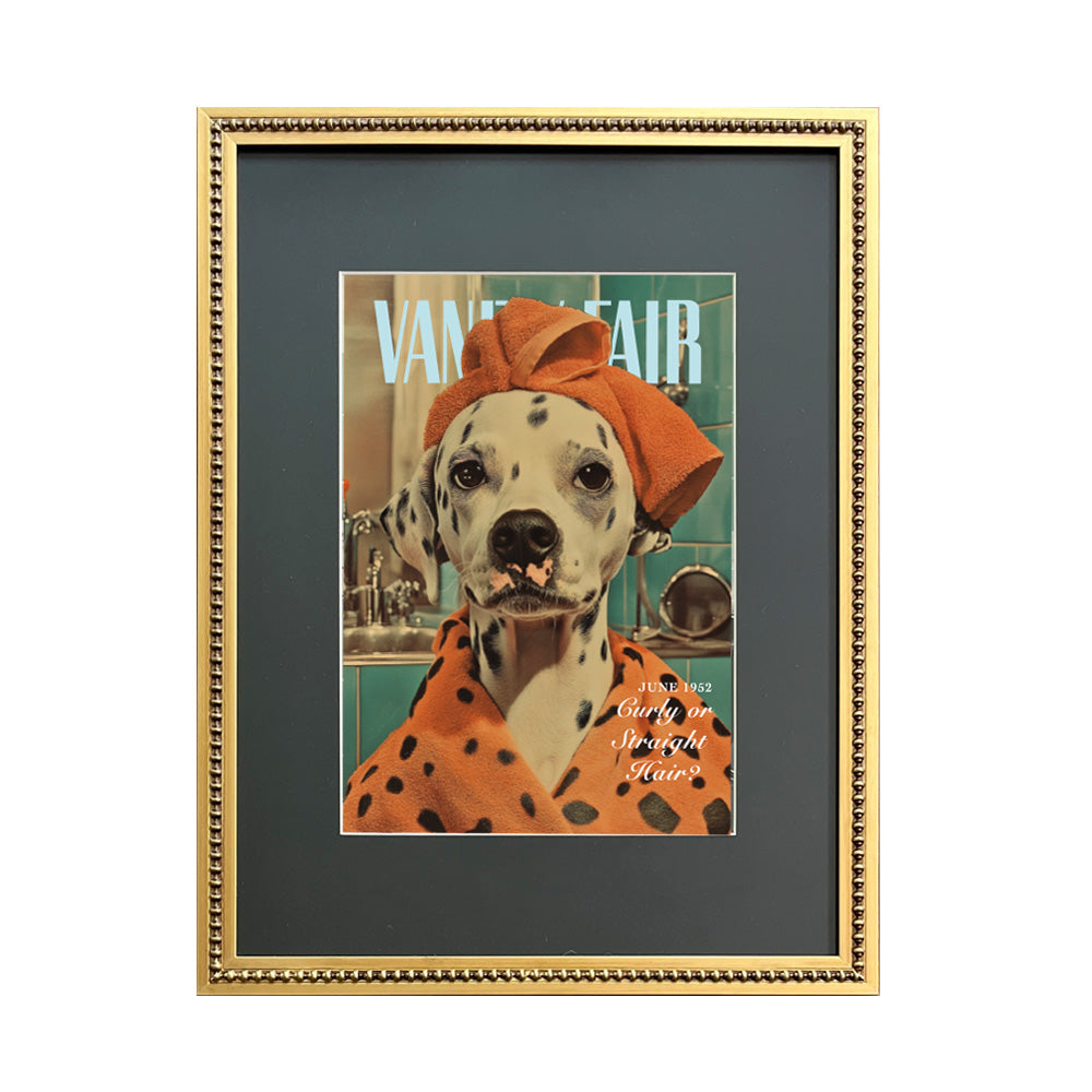 Cuadro de 50x65 cms. Ilustraciones digital con paspartú negro. Enmarcado en marco oro con perlita oro de 3 cms de frente.