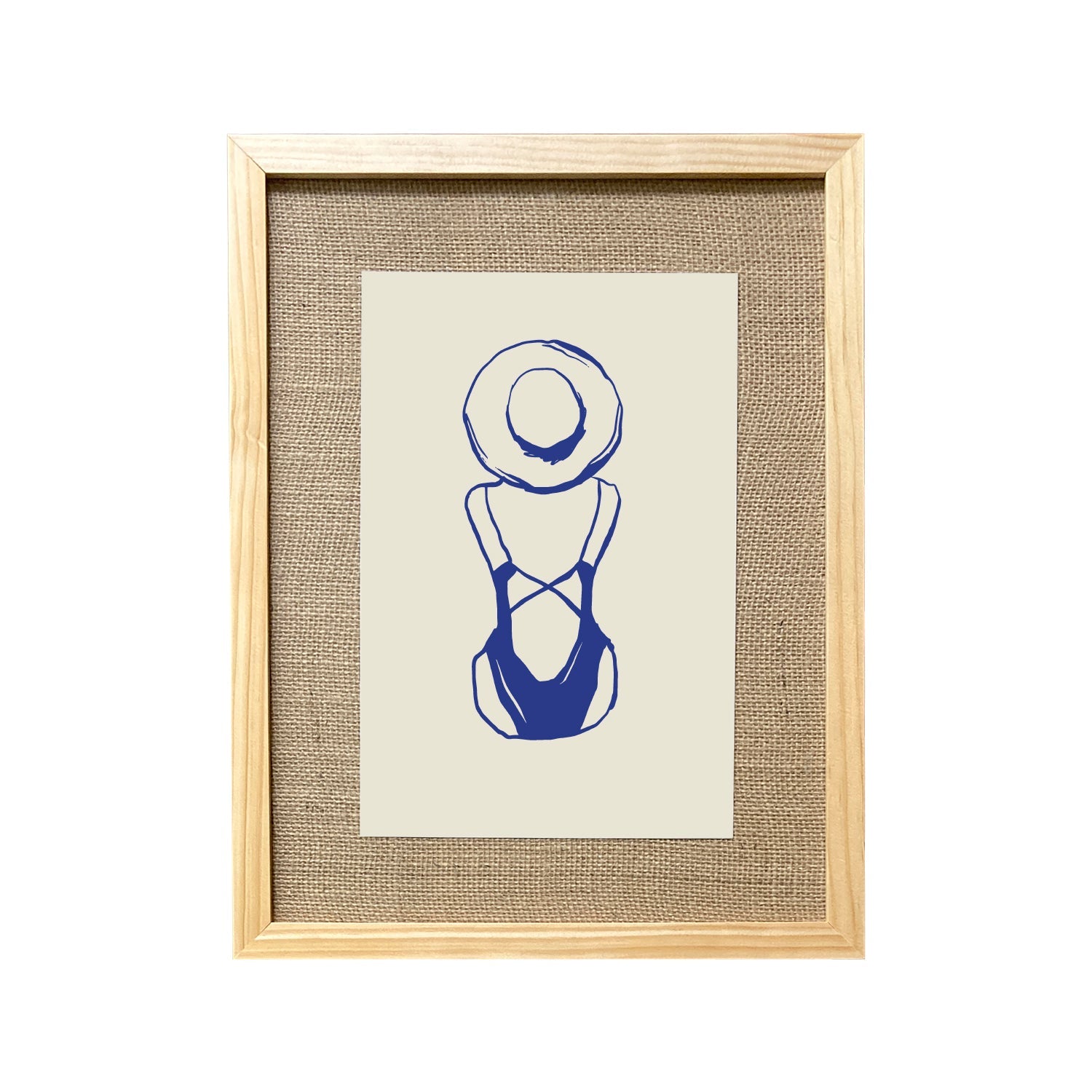 Cuadro de 33x43 cms. Lámina impresa sobre fondo de arpillera. Enmarcado en marco de madera natural de 2 cms de frente.